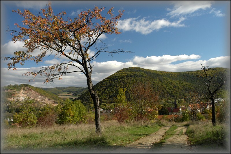 Obec Kuřimská Nová Ves - podzim nad vesnicí